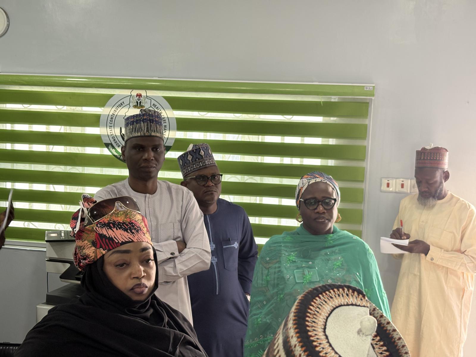The Executive Secretary of Borno State Contributory Healthcare Management Agency (BOSCHMA), Dr. Abba Saleh, FWACP, MPH, MBBS, received a delegation from Zenith Bank led by the Branch 2 Head Manager, Mrs. Falmata Aji Yakub, during a visit to the Agency.
